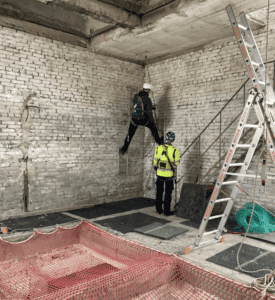 Ohutusvõrk meie Turu tänava koolitusruumis, kus oli oht kukkuda läbi korruste.